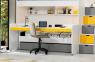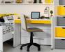 Der Schreibtisch Neo aus der Kinderkollektion Almila kombiniert Funktionalität, Flexibilität und modernes Design. Gefertigt aus melaminbeschichteter Spanplatte mit ABS-Kante in Weiß mit Akzenten in Grau und/oder Gelb, passt er perfekt zum Hochbett Neo.
