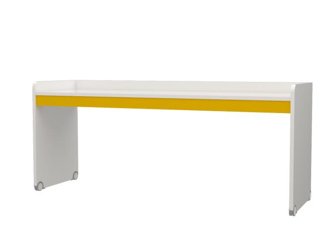 Dank der stabilen Rollen mit Bremsen lässt sich der Tisch leicht bewegen und bei Bedarf sicher fixieren. Besonders praktisch: Der Schreibtisch kann unterhalb des Hochbetts Neo positioniert werden – so wird wertvoller Platz im Kinderzimmer optimal genutzt.