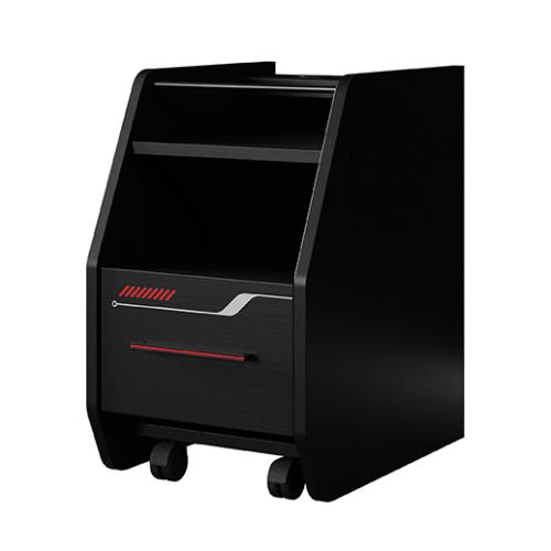 Die Nachtkommode Roox aus der Kinderkollektion Almila des Herstellers Infantil ist die perfekte Ergänzung für stylische Gaming- und Jugendzimmer. Gefertigt aus melaminbeschichteter Spanplatte mit ABS-Kante in Schwarz und mit Akzenten in Weiß, Grau oder Rot, verbindet sie modernes Design mit hoher Funktionalität.