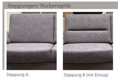 Wahlweise erhältlich als Steppung A oder Steppung B (mit Einzug).