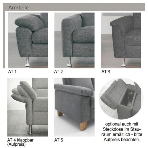 Der Aufpreis für Armteile (AT4 und AT5 mit Stauraum) kann per Mail an: moebelbay@moebelbay.de erfragt werden!