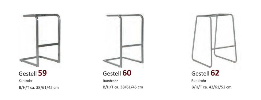 Verfügbare Gestell-Varianten: Wählen Sie Ihr bevorzugtes Design (Sitzhöhe jeweils ca. 67 cm):