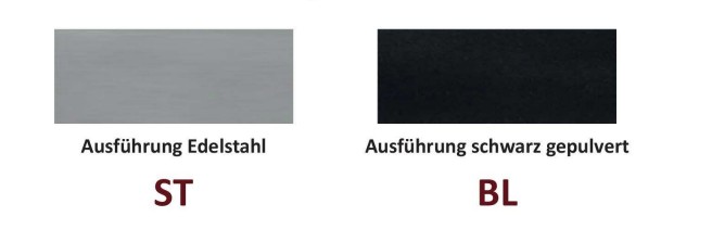 • Oberflächen: Wahlweise in Edelstahl (ST) oder Schwarz gepulvert (BL).