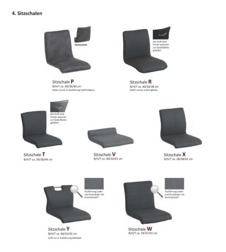 • Modelle: P, R, T, V, X, Y oder W (jeweils mit individuellen Steppungen, Griffoptionen oder Keder-Details).