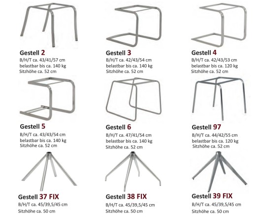 • Schwinggestelle (Freischwinger): Für sanftes Wippen und dynamisches Sitzen (Gestell 3, 4, 5).