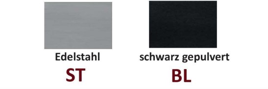 • Oberflächen: Wählen Sie zwischen kühlem Edelstahl (ST) oder modernem Schwarz gepulvert (BL).