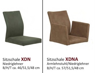 Vielseitige Sitzschalen: Wählen Sie zwischen der kompakten Sitzschale XDN als klassischer Niedriglehner oder der Variante XDNA, die durch integrierte Armlehnen zusätzlichen Komfort bietet.