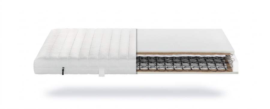 Eine stabile Wollfilz-Abdeckung schützt den Federkern und erhöht die Langlebigkeit der Matratze. Der Jersey-Bezug (Dessin 3767) ist mit 400 g/m² Hygienevlies versteppt und sorgt für ein angenehmes, trockenes Schlafklima. Dank umlaufendem Reißverschluss ist der Bezug abnehmbar und bis 60 °C waschbar. Wendeschlaufen erleichtern die Handhabung.