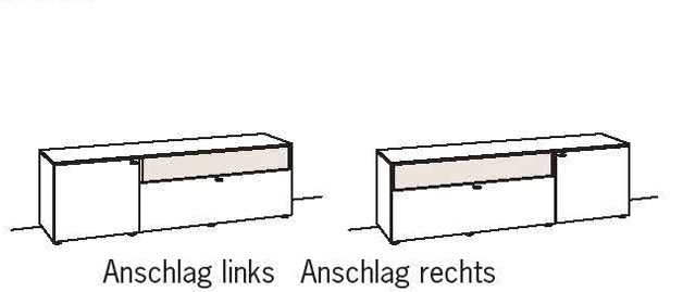 • Material: Korpus und Front in Lack anthrazit matt (38), Akzentfront in Eiche gehackt gebürstet geölt, massiv (93)