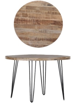• Tischplatte: Mango massiv, sägerau, natur gebeizt & lackiert