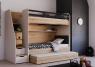Die Kinderkollektion New Option von Infantil Almila kombiniert modernes Design in Eicheoptik und Beige mit cleverer Funktionalität. Gefertigt aus einer robusten melaminbeschichteten Spanplatte mit ABS-Kante, bietet das Möbelprogramm langlebige Qualität und stilvolle Details für das Kinder- oder Jugendzimmer.