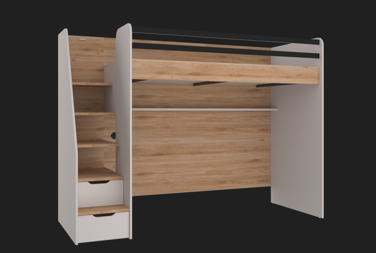 Das Hochbett ist das Highlight der Kollektion und überzeugt durch seine praktische Ausstattung:
