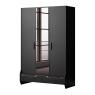 Die mittlere Tür ist mit einem Spiegel versehen, während die Holztüren außen das Design abrunden. Zwei Schubladen unten bieten zusätzlichen Stauraum für Kleidung oder Accessoires.