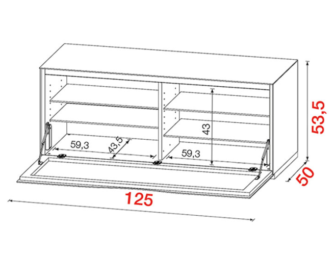 - 4 verstellbare Glasböden (max. Belastung je Boden 10 kg)